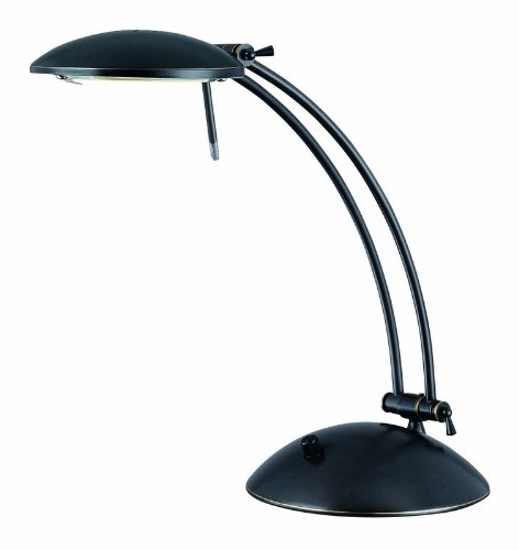 This sleek, contemporary design desk lamp adds a stylish executive touch to any home office or computer desk. The modern desk lamp look has an arm that swivels and adjusts at two points, offering a variety of lighting options. A full-range dimmer on the base allows you to adjust the light output for reading or viewing computer monitors. Dark bronze finish on the base and lamp arm. Includes one 100 watt halogen bulb. 17 1/2" maximum height. Shade is 6 1/2" long..../ Lite Source LS-3421D/BRZ Flash Halogen Desk Lamp, Dark Bronze / Design Lamps